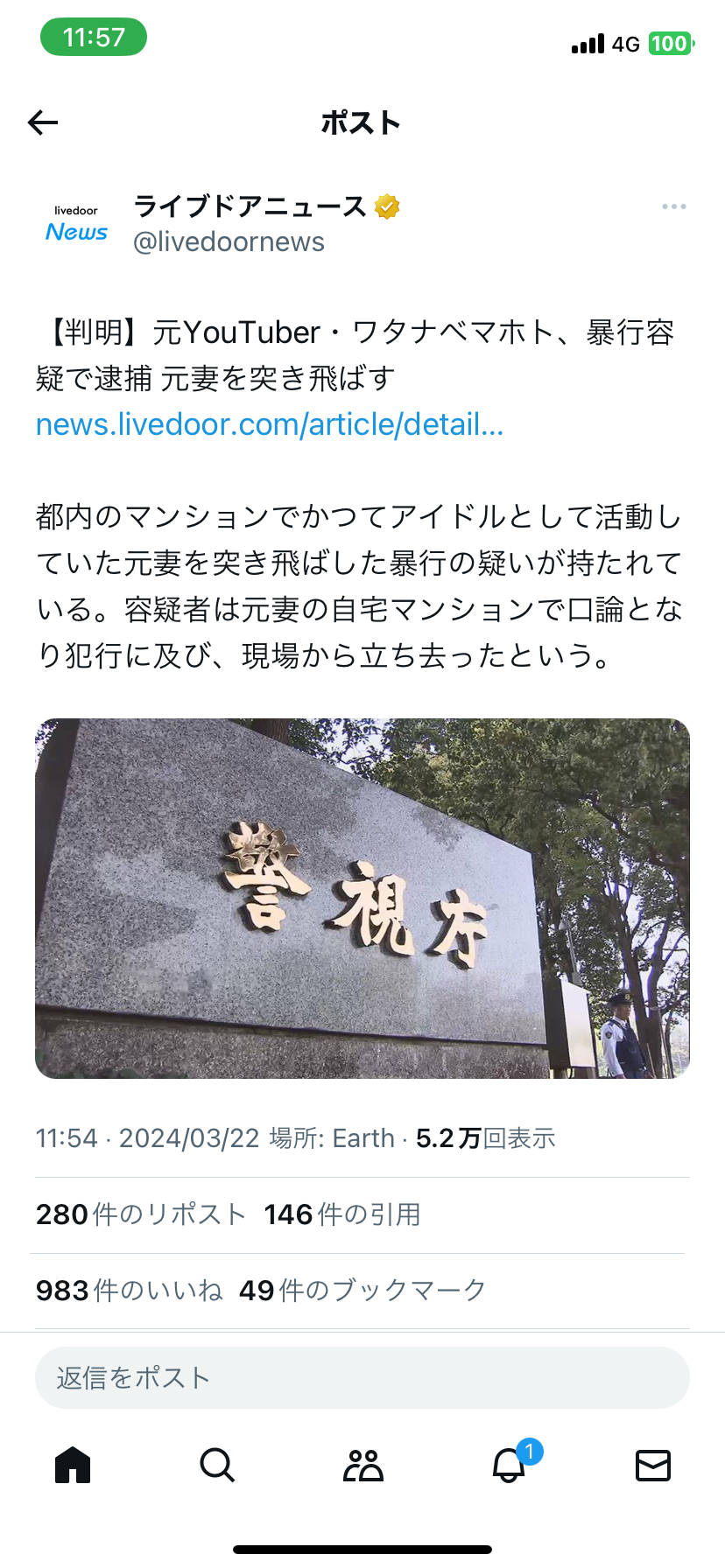 | 【独自】元YouTuber・ワタナベマホト(31)暴行容疑で逮捕 アイドル活動していた元妻を突き飛ばす…口論から犯行 ... - Yahoo!ニュース 【独自】元YouTuber・ワタナベマホト(31)暴行容疑で逮捕 アイドル活動していた元妻を突き飛ばす…口論から犯行 ... Yahoo!ニュース (出典:Yahoo!ニュース) |