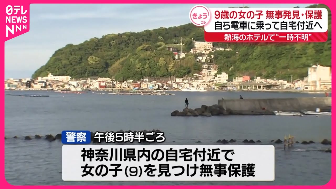 8日朝、熱海市下多賀のホテルで行方不明になっていた9歳の女の子について警察は午後5時半ごろ、神奈川県内の自宅付近で女の子を見つけ無事保護したことが新たに分かりました。