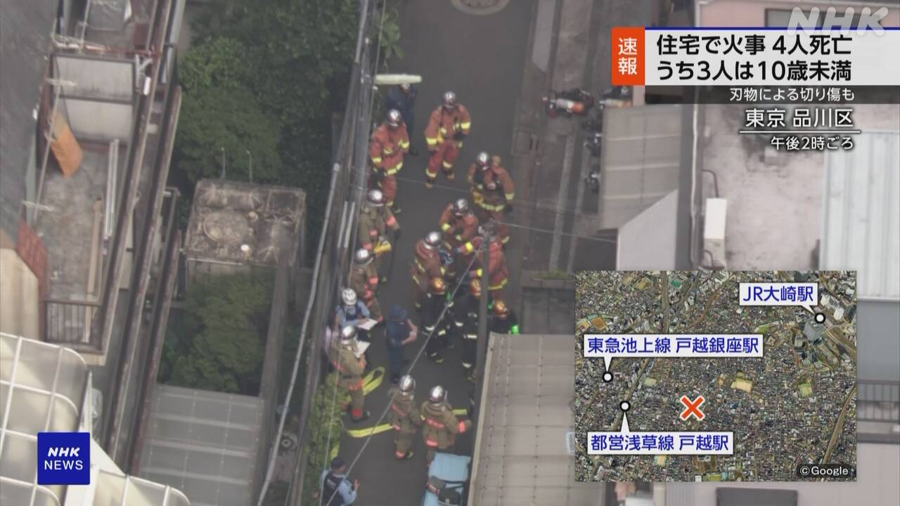 23日午後、東京・品川区の住宅で火事があり室内から4人が死亡しているのが見つかったほか、40代の男性1人がけがをして病院に運ばれました。