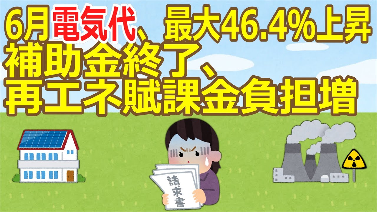 【値上げラッシュ】6月電気代、最大46.4%上昇 補助金終了、再エネ賦課金負担増 ★3 [ぐれ★]